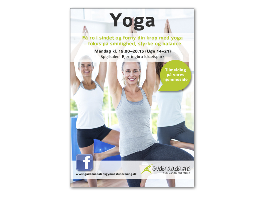 I forbindelse med opstarten af foreningen udviklede vi logo fra bunden og hele foreningens grafiske identitet blev skabt. Vi har lavet forskellige tryksager til Gudenaadalens Gymnastikforening, bl.a. annoncer, plakater og flyers.