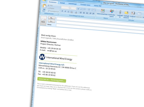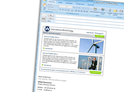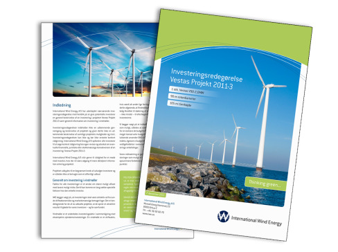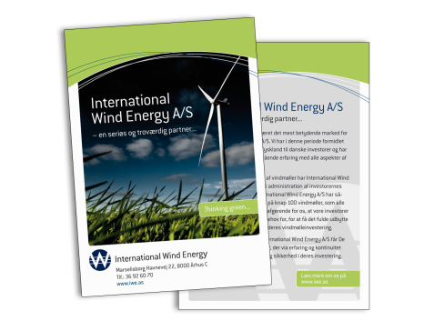 Da familievirksomheden International Wind Energy A/S ønskede at opdatere deres visuelle profil, finpudsede vi det grafiske udtryk på virksomhedens salgs- og markedsføringsmateriale.