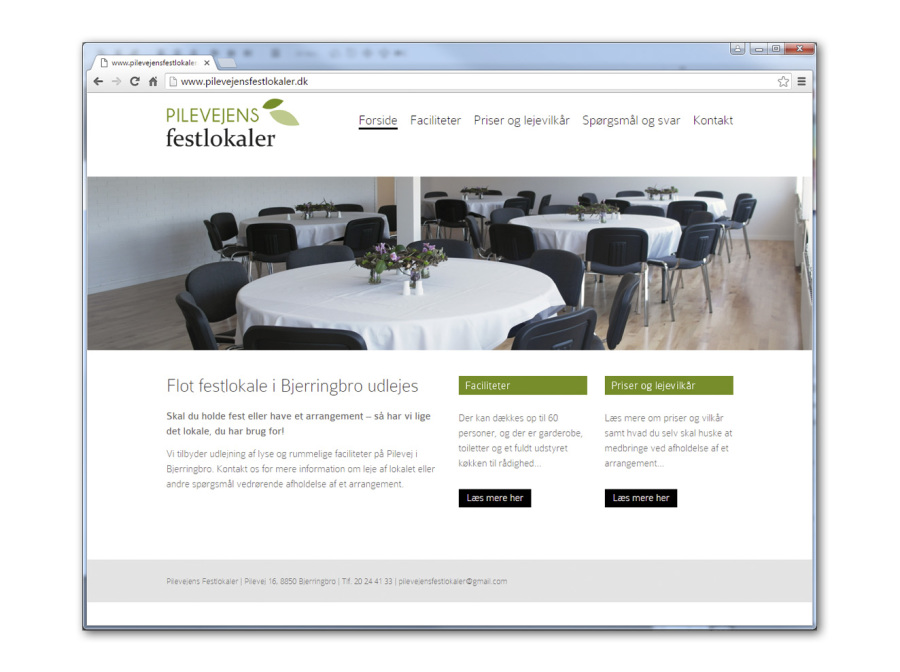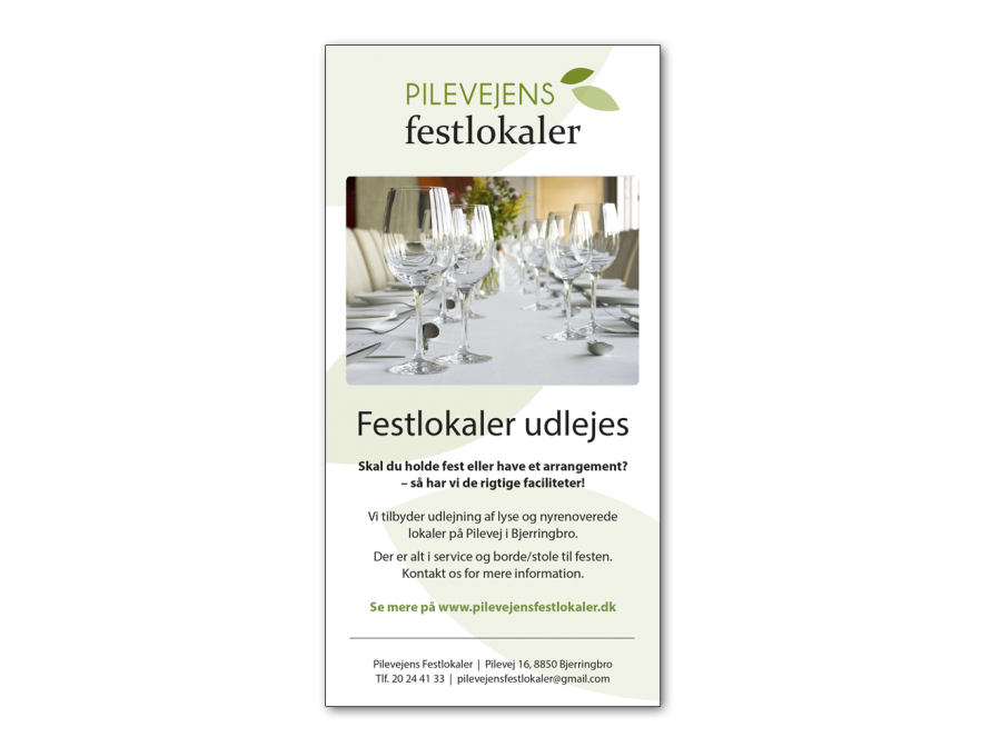Pilevejens Festlokaler udlejer festlokaler i Bjerringbro og i forbindelse med opstarten af virksomheden, havde de brug for en grafisk total-pakke. Virksomheden skulle bruge alt lige fra logodesign til hjemmeside.